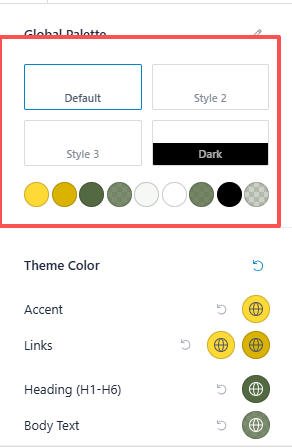 Global全局提供了丰富的设置,让我们更加灵活设置我们网站的全局样式,其中包含主要的几个设置: