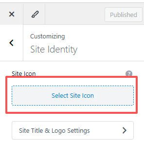 点击customize–>Site Identity, 在Site Identity上传我们的网站图标。